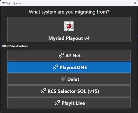If you want to import content from a Playout One system, you need to use the Myriad Upgrade Utility instead of the Import Wizard.