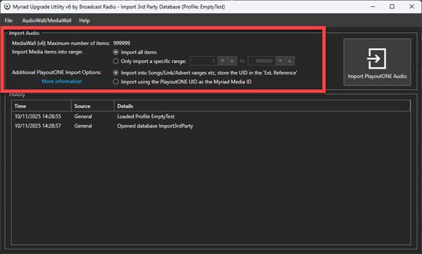 The Upgrade Utility will import all available Audio files that are listed in your PlayoutONE database, and import as much metadata (e.g. title/artist etc.)