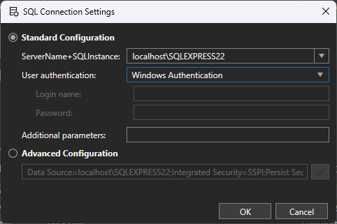 - Add in the connection details for the SQL database that hosts the PlayoutONE database.