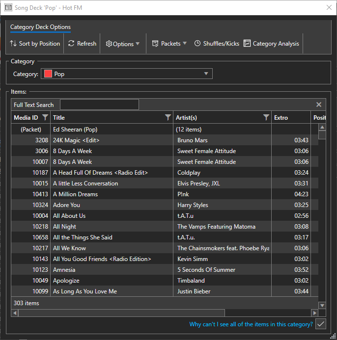 Note: The Deck Viewers only show items that are marked as "Allow Myriad Schedule to use this item when scheduling" because only these items are added in to the decks to go into rotation. You can use the Media Library or Media Report to see all of the items in a Category regardless of whether they are in the deck or not.