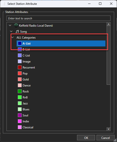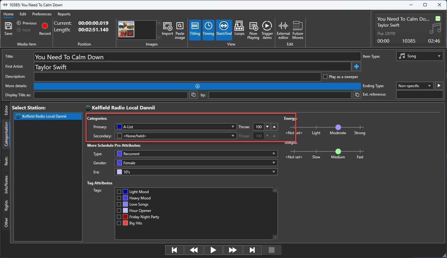 - In this example, we want start the song in the A List category so set that as the Primary Category.