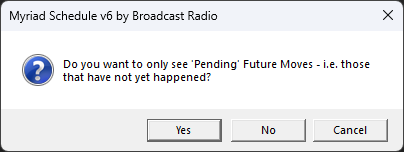 - The sequence is now complete and will be executed automatically by Myriad Schedule Pro. You can close the Future Moves window.