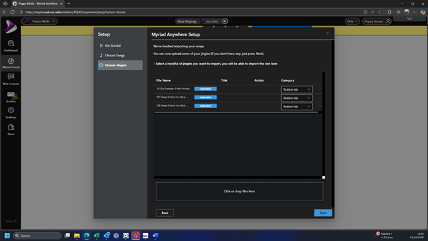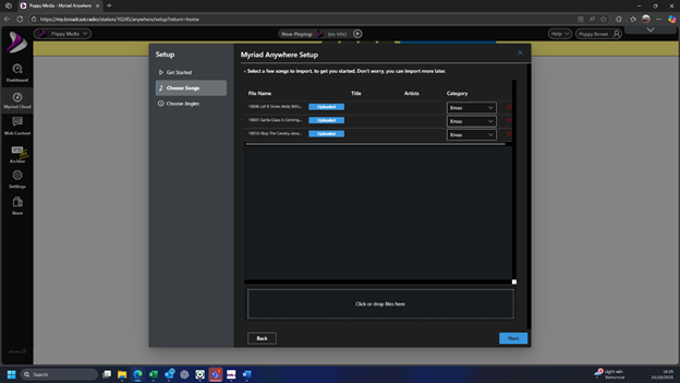 Once you have added a few Songs, click on the Next button. The files will take a few minutes to upload and import (depending on size and quantity.