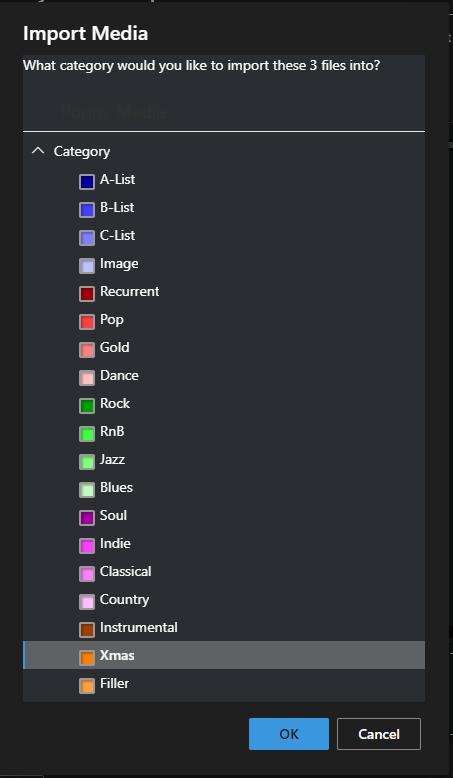 Open a File Browser window and drag a few song audio files into the Click or drop files area and then select Song Category you want to put them into.