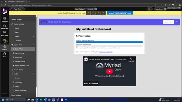 It may take several minutes to build and deploy your Myriad Cloud station. While you are waiting, why not watch the Welcome to Myriad Cloud Video using the embedded video in the center of the window.