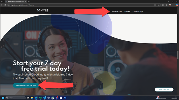 Start by visiting https://www.myriadcloud.com/#FreeTrial clicking on the Start Your Free 7 Day Trial button.