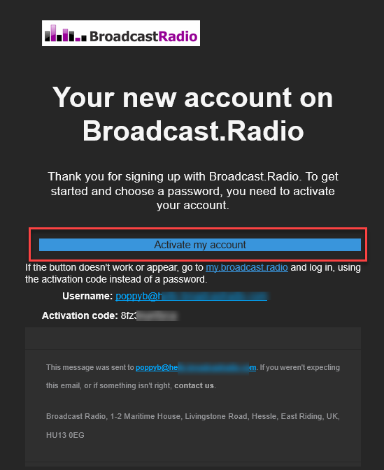 Click on the Activate My Account button to activate your Broadcast.Radio account.